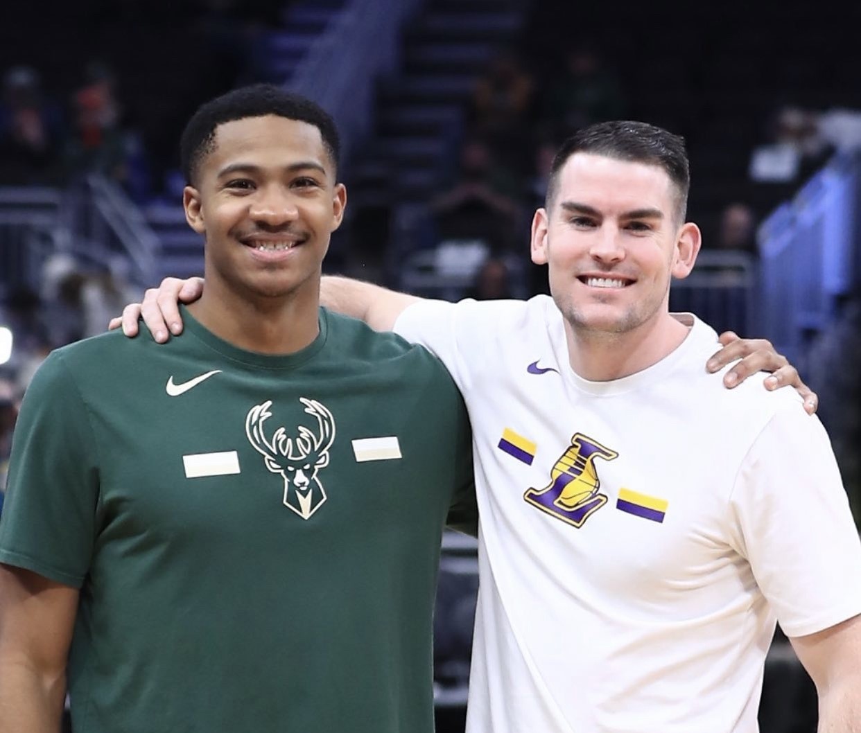 Both Jordan Sears ’18 and Greg St. Jean ’13 are among the few, each taking home a championship in the last few seasons. Sears won in 2021 as assistant video coordinator with the Milwaukee Bucks and St. Jean won in 2020 as an assistant coach with the Los Angeles Lakers.