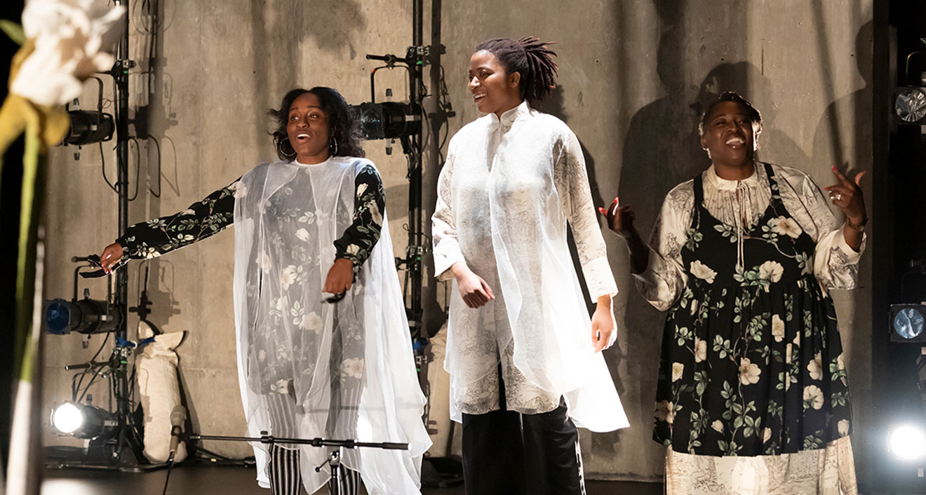 Alisha Simmons ’24 and Assistant Professor of the Practice in Dance and African American Studies Joya Powell were part of the “Threshold Chorus” that performed with Scapegoat Garden. “’Liturgy|Order|Bridge’ was such a delightful conjuring to be a part of and to witness,” Powell said of being inspired by Goffe’s process. “It was spectacular.”