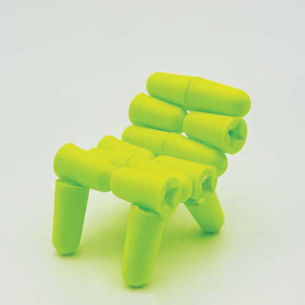 Students in Fundamentals of Design (Product Design I) learn the basics of form, hierarchy, pattern, and structure, and are assigned to design a sound vessel. Regenerative Design (Product Design II) students come up with 36 unique ideas for miniature chairs made out of found materials (e.g., bottle caps, toothbrushes, paper clips) and then create an “object for resting” out of composite materials that are recycled or reclaimed. And in Designing with Living Systems: Soft + Hairy, students begin working with mycelium, exploring how living organisms can be used as design materials and introducing them to zero-waste design methodology.