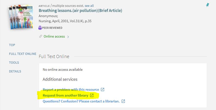 OneSearch: Click on the Request from another library option.