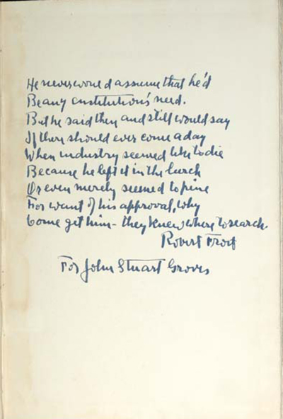A physician specializing in psychiatry and neurology, Frank Hallock (1860-1937) focused his book collecting on sixteen leading 19th-century literary authors, nearly all of them American. He collected these writers in depth, building a library of many first editions, as well as scarce and unusual editions. The 1600-volume Hallock collection was presented to Wesleyan in the early 1930s. -