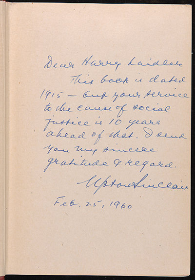 Harry Laidler (1884-1970) founded Wesleyan’s first student socialist society and went on to a career with the League for Industrial Democracy and the National Bureau of Economic Research. Throughout his adult life, he wrote extensively on socialism, and he built a substantial collection of related books and pamphlets. Shortly before Laidler’s death, Wesleyan made arrangements to purchase about 250 volumes from his library. -