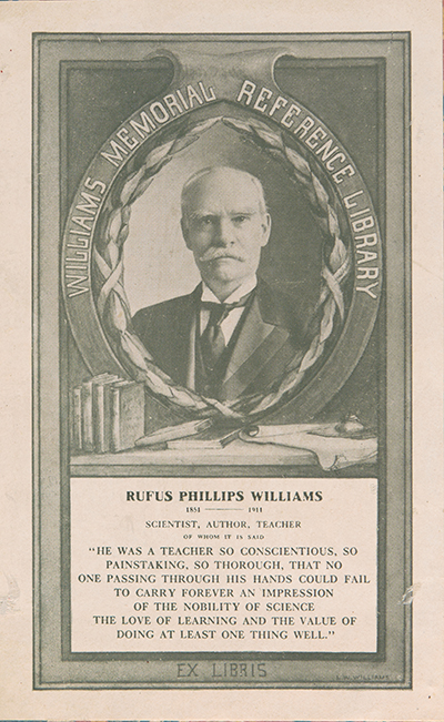Rufus Phillips Williams (1851-1911) taught chemistry in a Boston secondary school and wrote chemistry textbooks. He bequeathed his extensive library on the history and teaching of chemistry, alchemy, and the metric system to the New England Association of Chemistry Teachers (NEACT), an organization he founded and served as president. In 1936, the collection came to Wesleyan on permanent deposit through the good offices of Williams’s widow and Elbert C. Weaver, Class of 1922, a high school chemistry teacher in Hartford and later at Andover. The books are divided between Special Collections & Archives and the Science Library. In 2011, NEACT donated its organizational archives to SC&A.