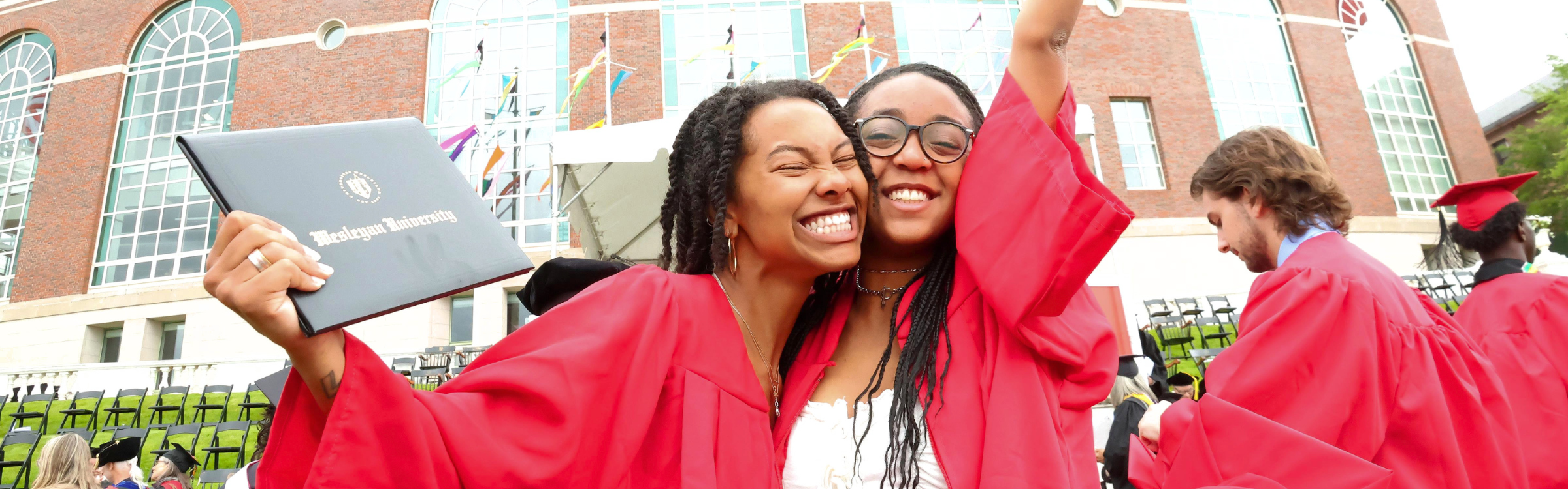 Information will be posted on the Wesleyan homepage and the Reunion & Commencement website, and graduating seniors will be notified via email. Details will also be available at the Welcome + Giving Center at the Stewart M. Reid House. The Ceremony will be simulcast in the Memorial Chapel, Patricelli ’92 Theater, Ring Family Performing Arts Hall, and Tishler Lecture Hall (Room 150) at Exley Science Center, rain or shine. The ceremony may also be viewed on the Commencement homepage.